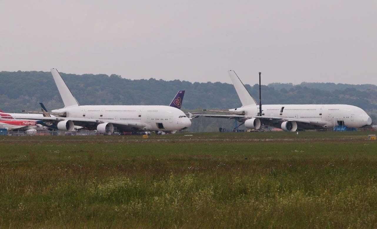 Los dos aviones que se encuentran en los talleres de Tarbes, cerca de Lourdes, son los MSN003 y MSN005, los primeros A380 que entraron en servicio comercial. Los denominados como MSN 001, 002 y 004 fueron utilizados por Airbus para los vuelos de prueba, precisa Simple Flying.